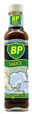 The initial idea is a plate of fish and chips..the fish is dead and oil-drenched..and there is a bottle of "BP Sauce" on the side..